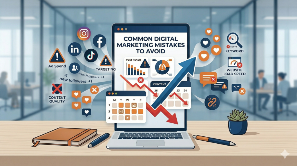 Digital marketing is a powerful way to grow your business online, but many businesses make mistakes that limit their results. This post talks about common digital marketing mistakes to avoid which helps you improve your strategy, attract more customers, and increase conversions.